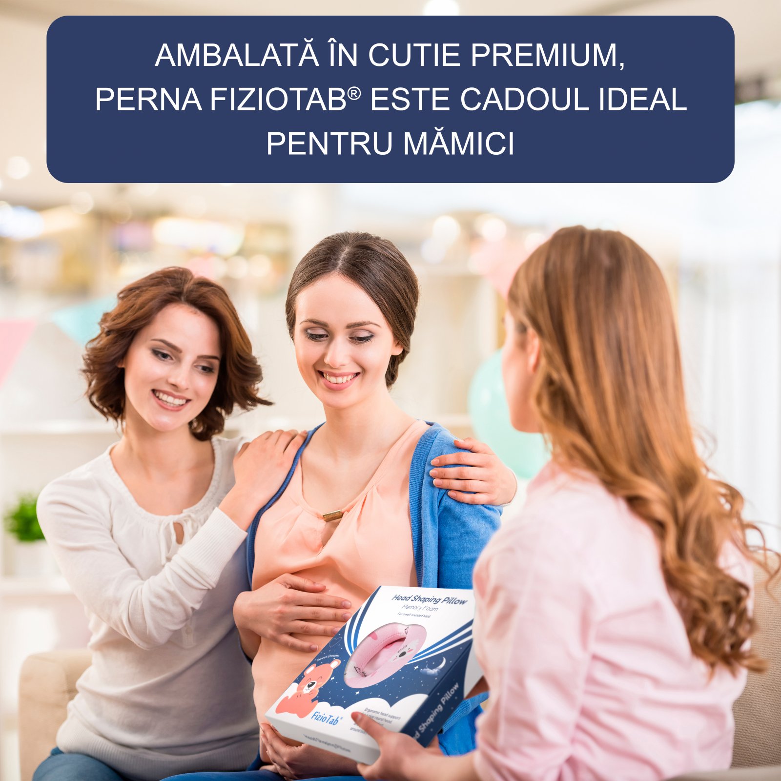- Perna FizioTab® este ambalata in cutie eleganta, ideala pentru a fi oferita cadou viitorilor parinti, la botez, baby shower, etc.